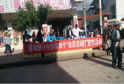 5月29日,通甸镇计生协工作人员与镇卫生院相关工作人员联合利用街天在人口密集的集贸市场开展第18个“会员活动日”宣传服务活动。活动通过悬挂横幅、免费发放各种宣传品、计生药具和设立服务咨询台等形式,大力宣传新修正的《云南省人口与计划生育条例》、优生优育、生殖健康等相关知识,活动深受广大群众的认可和赞赏,收到良好的社会效果。本次活动,共发放宣传资料300余份、宣传品800余份,免费发放避孕药具200余盒。