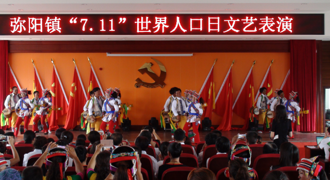 在第27个世界人口日来临之际,7月6日,弥阳镇计生办、计生协在镇政府七楼会堂举办“7.11”世界人日文艺汇演。
