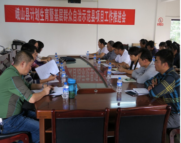 峨山县及时贯彻落实云南省计划生育工作电视电话会议精神,于9月2日,在小街街道召开峨山县计划生育暨群众自治示范县项目工作推进会。县卫生计生局、计生协会、妇计中心等相关部门领导及股室负责人,8个乡镇(街道)计生办全体人员、卫生院(计划生育工作)负责人共50余人参加会议。