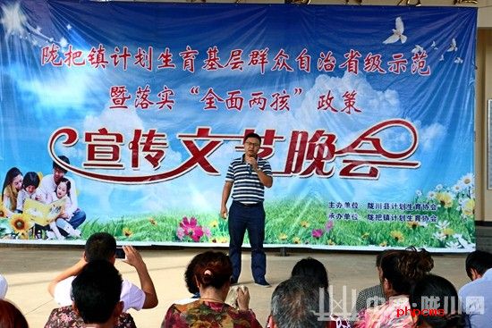 11月11日,由县计划生育协会主办,镇计划生育协会承办的陇把镇计划生育基层群众自治省级示范暨落实“全面两孩”政策宣传文艺活动在陇把镇户岛村委会举行。县卫计局局长闫有,副局长柳迎红,镇党委副书记、镇长雷剑鑫,镇纪委书记尹大炯、副镇长李宏斌及各村社区代表和周边村民民参加了活动。县卫计局局长闫有和镇长雷剑鑫分别上台讲话致辞。