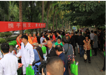 各级防艾办在艾滋病宣传日活动期间,发放各种宣传手册、宣传单、防艾宣传朴克、围裙、雨伞等10万余份宣传用品,广泛在农村、机关、企业、社区、学校开展宣传及关爱活动,有效提高群众防艾意识。