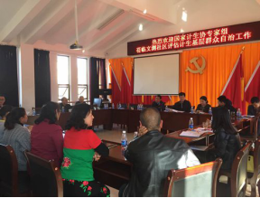 23日,评估组在省计生协项目部部长姚志昂、省计生协副调研员付健、市计生协会副会长陈明乾、区计生协会长郭映辉等领导的陪同下,分别到守望回族乡水井湾社区和凤凰办事处文渊社区进行实地评估。评估组一行查看了两个社区的计生协组织建设情况、阵地建设情况、制度建设情况后,分别听取了两个乡(镇)、办事处计生基层群众自治工作开展情况汇报,并组织了群众座谈会,与20余名育龄群众代表进行了详细的交谈,询问了育龄群众参与计生基层群众自治情况和对生育政策的知晓率等情况,两个座谈会气氛活跃、轻松愉快,让参会人员切实感受到群众计划生育观念的转变。