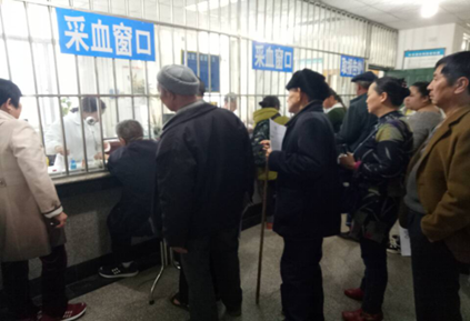 (图为县、乡计生协工作人员在体检室门外与计生特殊家庭亲切交谈)