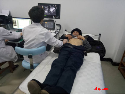 (图为计生特殊家庭蔡老先生在做B超检查)