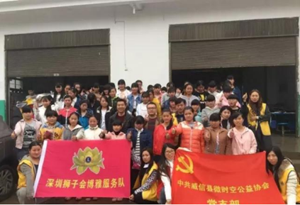 4月1日,天下着小雨,威信县小城故事服装店的老板魏康燕女士早早就来到店里细心打包着百余件外衣,小心地把衣服装在自己的车里。同时在另外一边——微时空公益协会党支部,深圳狮子会博雅服务队、扎西社工的志愿者们也忙活着把深圳狮子会博雅服务队捐赠外套装车。9:20分,装着爱心衣物的车队向长安中学驶去。
