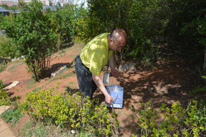 顶着烈日,党员们佩戴党徽,沿着凤凰山森林公园的山路捡拾沿途的白色垃圾、果皮、饮料盒子等废弃残留物,每当遇见非法张贴的小广告、乱涂乱画等公园“牛皮箱”,各位党员蹲下身子,用小铲子、锅丝等将它们一一清除,并向游人宣传昭通“四城同创”的政策及有关工作要求。