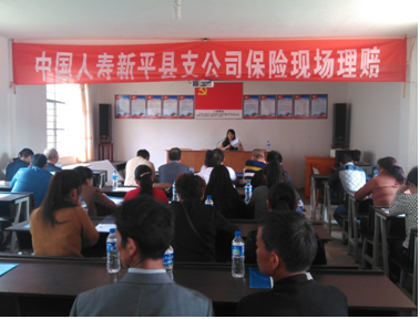 调研组每到一个乡镇都召开由乡镇分管副镇长主持,各村委会主任、村计生宣传员等人参加的计生保险工作暨计生保险现场理赔会议。刘邦华副会长要求:一要强化宣传,营造良好氛围,让群众真正明白开展计划生育家庭意外伤害保险工作的好处和现实意义,提高群众的保险意识和参保的积极性;二要注重业务培训,增强业务素质,让村级干部掌握计生家庭意外伤害保险运作方式、入保手续和理赔程序;三要为育龄群众提供优质、高效、便捷的服务。新平县支公司工作人员还现场培训了保险业务知识并发放了计生保险宣传材料。