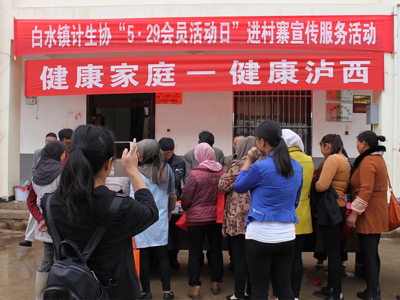 5月17日,泸西县白水镇计生协联合县计生协、防艾办、健康教育所、镇卫生院、镇妇联等相关单位,深入回民地区桃园村委会开展“5.29会员活动日”宣传服务活动。