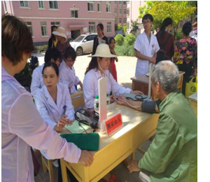 为深入推进峨山县脱贫攻坚工作,发挥好健康促进在脱贫攻坚工作中的积极作用,减少“因病致贫、因病返贫”,保障全民身体健康,确保脱贫攻坚行动卫生计生各项任务目标如期完成,2017年5月21日、23日,借计划生育协会“5 .29”会员活动契机,县卫计局、县计生协会组织县卫生监督局、县爱卫会、县人民医院、县中医医院、县妇计中心、县疾控中心、双江卫生院、双江计生办、中国人寿保险峨山支公司等单位医疗卫生人员21人,在县城安馨园小区、原化肥厂生活区开展了以“爱心助贫 共奔小康”为主题的健康扶贫义诊活动。