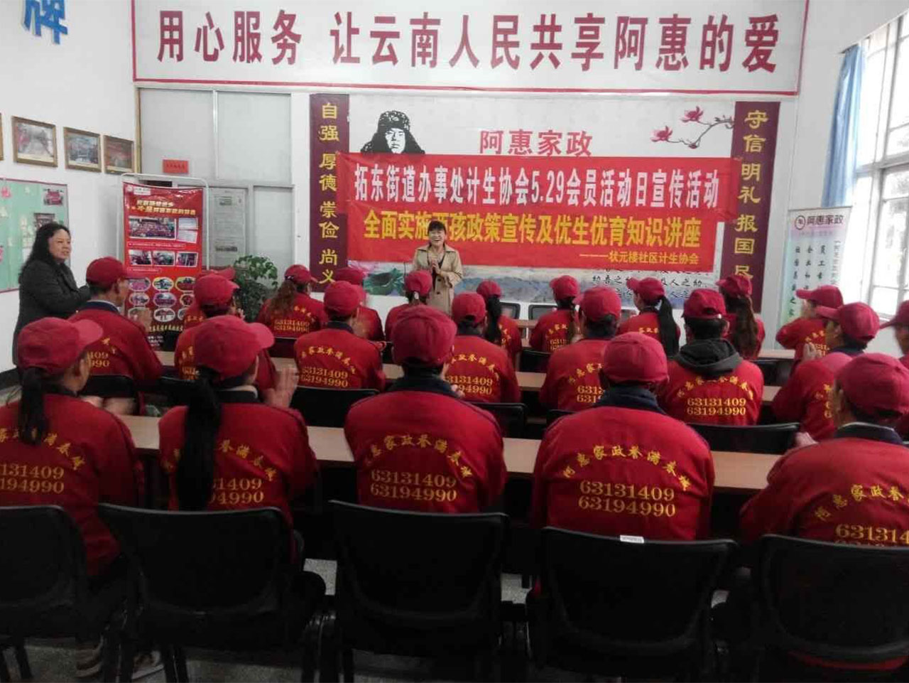 拓东街道计生协为阿惠家政50余名流动人口开展了“全面实施两孩政策及优生优育知识”讲座,发放宣传资料300余份,避孕药具300余盒,接受群众政策咨询100余人次。