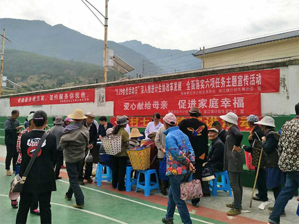5月25日,市计生协会、中国人寿保险迪庆分公司、金江镇计生协会在金江镇文化广场联合举办“5.29会员活动日暨计生业务培训”宣传活动,活动现场气氛热烈,群众们踊跃参与活动。