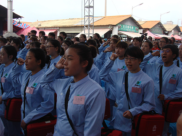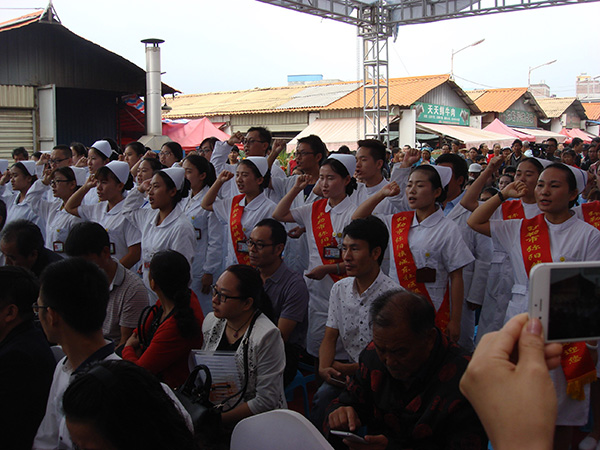 活动现场,随着中心王泽芳院长宣布云南省三甲专家下基层暨家庭医生电子签约仪式正式启动,社区群众在载歌载舞欢乐声和轰隆隆的鞭炮声中喜庆中国共产党96周岁生日的同时,还迎来了来自云南省第一人民医院、云南省第二人民医院、昆明医学院第一附属医院、昆明医学院第二附属医院和昆明市人民医院等省城三甲医院15名专家和社区卫生服务中心113名医护人员组成的家庭医护和健教团队。医生团队列队进入启动仪式现场,庄重宣誓:用“爱心、良心、放心、关心、细心”做弥勒父老乡亲“小病时的医生、大病时的参谋、重病时的亲人、康复时的助手”。