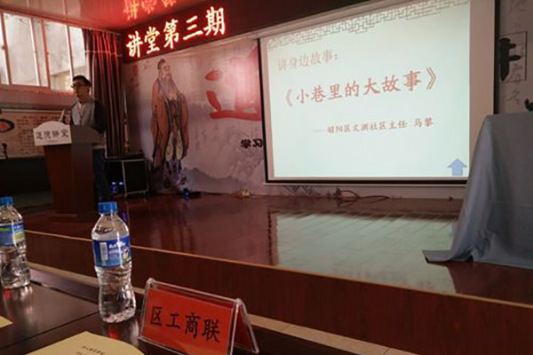 一曲《好人就在身边》在李卫冰的领唱下拉开了道德讲堂的序幕;孙杨领诵并诠释《孝经》、《中庸》选段,让人们在静穆中自省;昭阳区文渊社区主任马黎根据自己多年的社区工作经历讲述了《小巷里的大故事》,一句句朴实的语言让人感受到了巨大的力量;昭阳区农村商业银行团员青年杨琦《不忘初心 方得始终》提醒着大家,要时刻怀揣感恩之心。在优雅的背景音乐声中,讲堂内外弥漫着浓厚的仁、义、道、德文化气息,掌声阵阵响起。
