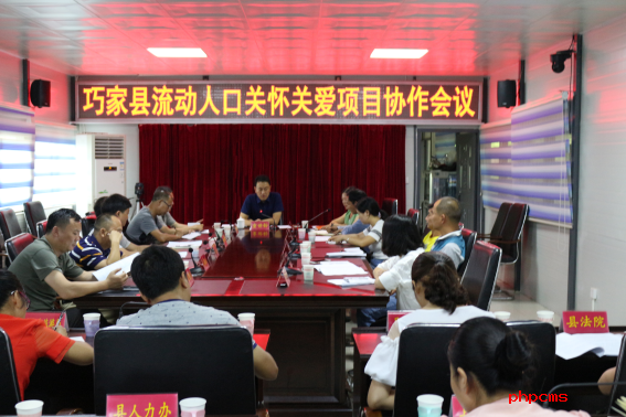 为进一步推动中国计生协流动人口关怀关爱项目巧家项目点各项工作深入落实,确保项目取得实效、受益群众,7月13日,巧家县人民政府组织召开流动人口关怀关爱项目协作会,县人政府副县长、计生协会会长童世铃出席会议并讲话,白鹤滩镇、大寨镇分管领导及计生协工作人员,流动人口关怀关爱项目领导组成员单位领导参加会议。