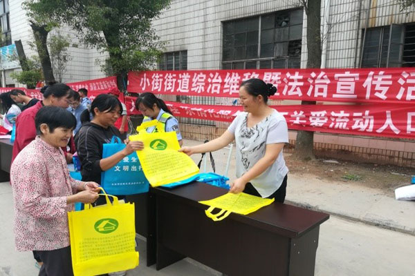 7月4日,峨山县小街街道组织综治、公安、司法、卫生计生、劳动保障等部门利用赶集日上街开展“7.11”人口日暨流动人口基本公共服务均等化宣传及健康义诊服务,宣传卫生、计生法律法规及惠民政策,为群众解答疑问,并发放《云南省人口与计划生育条例》、《“全面两孩”政策解读》、《培养健康行为习惯远离寄生虫病危害》、《基本公共卫生健康素养宣传手册》、《家庭医生签约服务宣传》、《流动人口卫生计生服务均等化免费项目》等宣传资料,开展家庭医生签约服务等。活动期间共发放宣传资料(册、折页)3000余份、环保袋500余个、安全套240盒,解答政策咨询65人、健康义诊85人。