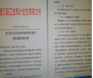 三是办理计划生育特殊家庭成员医疗服务卡。在县级公立医院开通了就医“绿色通道”,为每个计划生育特殊家庭办理了“计划生育特殊家庭成员医疗服务卡”,开展定点医疗服务机构,免费健康体检和咨询,建立健康档案。县财政全额资助新农合个人承担部分及拨款为其家庭成员购买计生家庭意外伤害保险,以实际行动关爱计划生育特殊家庭,深受群众的欢迎。
