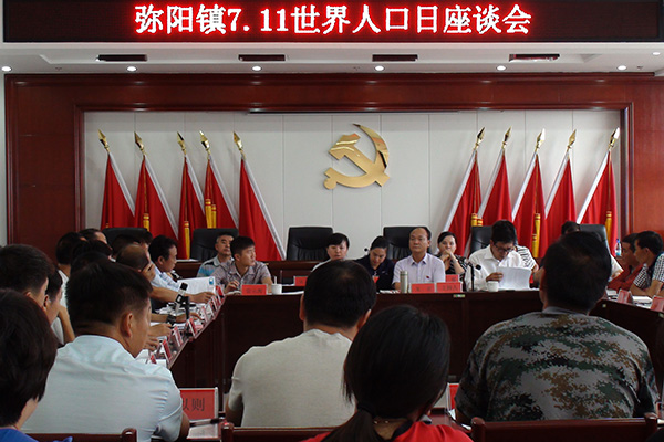 7月10日上午,弥阳镇计生办、计生协联合召开纪念“7.11”世界人口日座谈会。