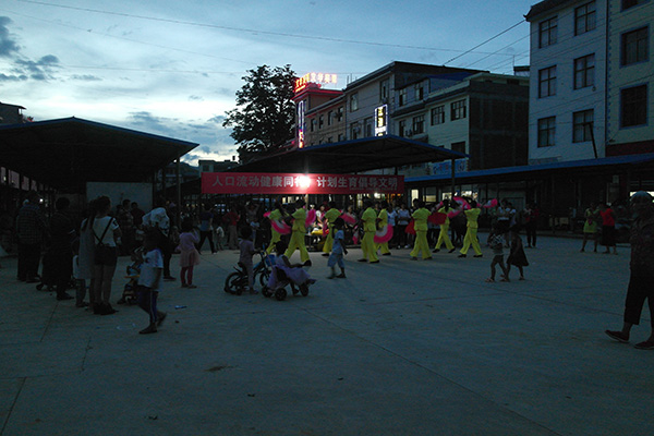 宣传活动结束时,来自江边村委会的两支计生协会文艺队向观众表演《异乡情暖民工心》、《我在他乡最幸福》等文艺节目,节目把流动人口基本公共卫生服务项目、孕产妇保健、性病、艾滋病防治、生殖健康等知识融入到其中,深入流动人口农民喜爱。一位四川籍张姓民工说,江边虽然贫困,但是在这里我能享受到家乡一样医疗卫生、计生服务。