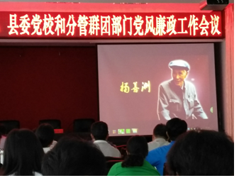 会议首先观看了视频《践行群众路线的好榜样:杨善洲》信仰的力量、人民的公仆、永远的本色、正气的赞歌四集专题片。视频中的杨善洲一辈子淡泊明利、地位,一辈子公而忘私、廉洁奉公,坚持艰苦朴素、勤俭节约的优良作风。参会干部职工受到强烈震撼,被杨善洲的事迹深深感动。观看视频后,县委副书记刘世伟为全体参会干部职工上了一堂廉政党课并提出三点要求: