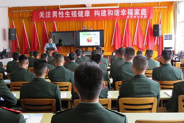 7月17日-18日到部队开展讲座4场次。张富刚副教授分别从男性的生理特点、男性生殖健康的概念、男性生殖健康的现状、威胁男性生殖健康的三大“杀手”及男性生殖健康保健、生殖疾病的预防作了全面系统的讲解,并结合其多年的工作经验和经典案例进行深入阐述,提醒官兵们健康的生活方式就是最好的保健方法。张老师图文并茂的生动讲解,多次赢得官兵们热烈的掌声。讲座结束后,张教授和部队官兵们进行互动,解答了他们日常生活中遇到的困惑与问题。
