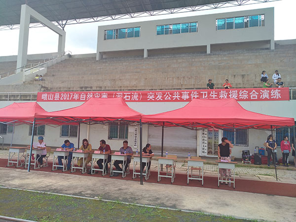 近日,在峨山县运动场举办了“2017年泥石流自然灾害突发公共卫生应急救援综合演练”工作。此次演练旨在提高峨山县卫计系统工作人员应对突发公共卫生事件应急处置的能力和整体实战水平,有效控制和消除各类突发公共卫生事件的危害,确保一旦发生突发事件后能够迅速、有序、有效开展医疗救援及卫生防疫工作。