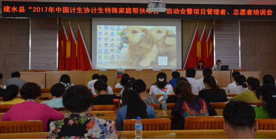 2017年8月5日,建水县召开计生特殊家庭帮扶项目启动会暨项目管理者、志愿者培训会。县卫计局局长、计生协会常务副会长陶生安,县计生协会秘书长魏海红,临安镇计生工作分管领导刘晓燕,各乡镇计生协会、临安镇村(居)计生协会秘书长,县计生协会志愿者服务队共计80余人参加了会议。