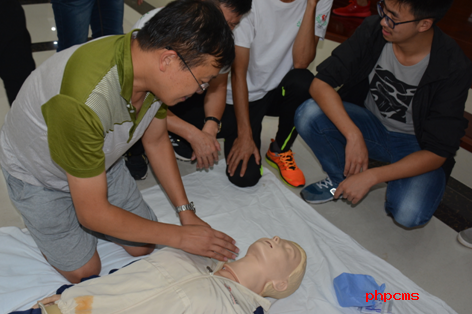 邀请县人民医院重症医学科主任梁伟从非医务人员的角度出发,给大家进行了心肺复苏等常用急救知识培训,并结合理论让参训人员进行了现场操作练习。
