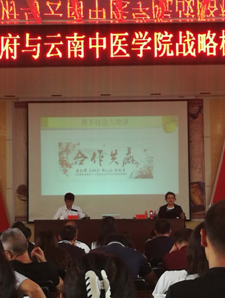 讲座会上:熊磊院长就中医药、大健康产业发展从四方面进行了精彩讲解。一是对中医药的认同度和重视度不断提升。中医药拥有五大资源:卫生资源、经济资源、科技资源、文化资源、生态资源。二是中国梦,健康梦。“没有全民健康,就没有全面健康”。三是兴产业,促跨越,云南在行。对云南发展的三个新定位新要求:民族团结进步示范区、生态文明建设排头兵、面向南亚东南亚辐射中心。四是建设“中国健康之城”,昆明在行动。从十个要:“要学、要抢、要想、要聚、要干……”逐一分析,如何建设六个云中:智慧云中、文化云中、健康云中、开放云中、和谐云中、幸福云中。
