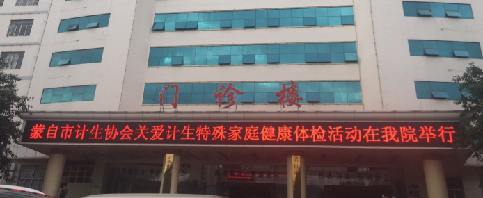 9月7日清早,蒙自市人民医院门诊大楼电子屏滚动播放着两条显目标语“蒙自市计生协会关爱计生特殊家庭健康体检活动在我院举行”、“欢迎蒙自计生特殊家庭人员到我院免费健康体检”,数名医务志愿者早早等候在门口,迎接全市135户186名计生特殊家庭人员来此参加免费健康体检。