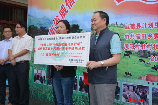 9月12日,由中国人口福利基金会、幸福工程全国组委会主办的“幸福工程—救助贫困母亲”威信县黄牛养殖项目启动仪式在高田乡凤阳村举行,云南省计划生育协会常务副会长易会安,云南省计划生育协会副会长、昭阳区计划生育协会会长郭映辉,省计生协组织宣传部副部长徐广越,昭通市计划生育协会常务副会长秦科华及威信县委县政府有关领导出席启动仪式,会上为37位贫困母亲现场发放项目款96万元。