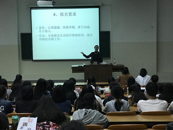 孙教授对积极踊跃报名参与志愿活动的同学给予充分肯定,结合去年项目开展过程中大学生志愿者们的亲身体验、遇到的困难和问题,讲解了志愿者的基本礼貌礼仪、心理沟通技术、丧亲心理支持技术、亲情陪伴人员的情绪管理等内容,并对志愿者进行了答疑解惑。