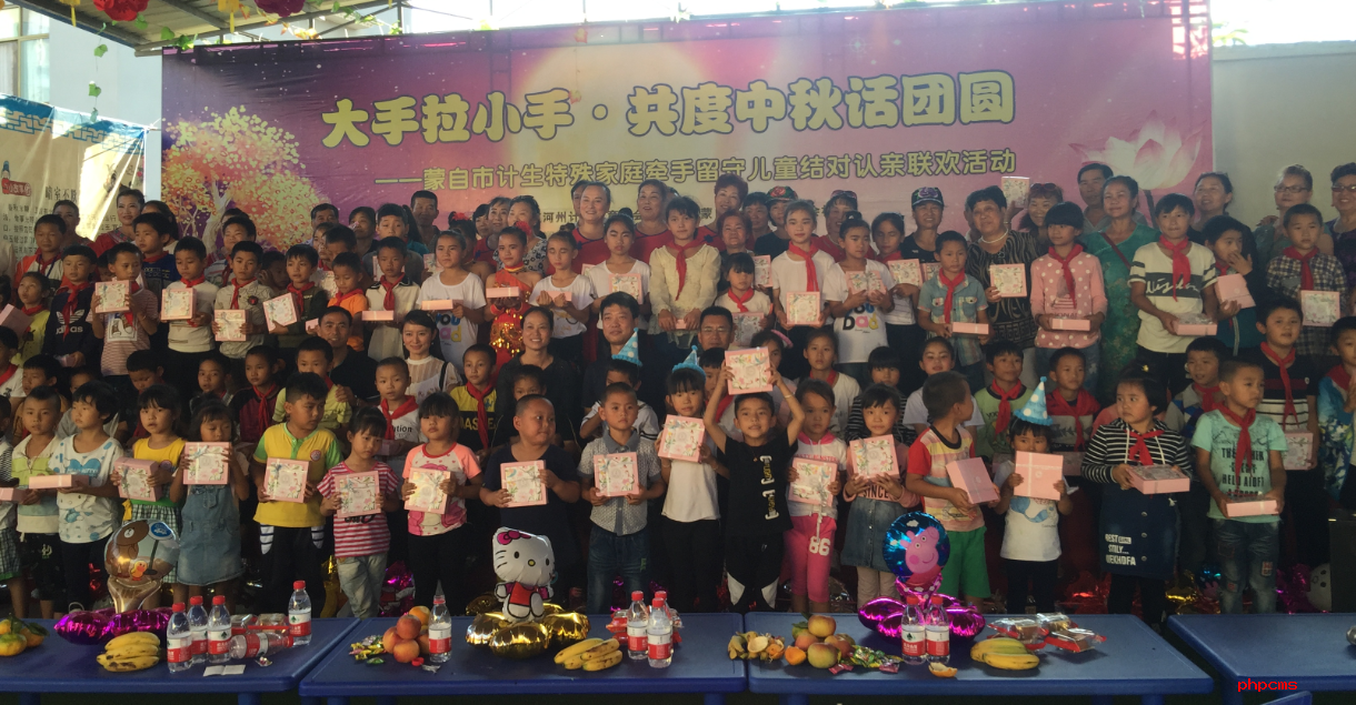 9月29日,蒙自市雨过铺童鑫学校张灯结彩,喜气洋洋,在这里学习生活的78名留守儿童早早穿戴整洁,齐聚校门,翘首期盼即将到来的“特殊客人”……两辆公交车经过一路崎岖,平稳停驶在校外,来自各社区的20户计生特殊家庭代表疾步走入简陋却温馨的童鑫学校,早已等候的留守儿童纷纷围上前,热情地邀请爷爷、奶奶们走进活动现场,一起参与红河州计生协与蒙自市计生协联合举办的计生特殊家庭牵手留守儿童“大手拉小手,共度中秋话团圆”活动。此次活动得到了州委常委、市委书记庞俊的批示支持和祝福,他个人向活动捐款1000元,将用于关爱留守儿童。