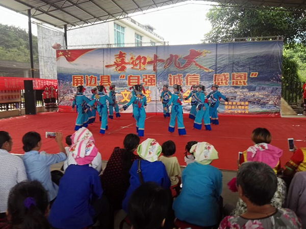 10月17日,中共屏边县委、县人民政府与白河镇计生协联合组织开展的 “喜迎十九大·自强 诚信 感恩·” 主题实践系列活动在白河镇拉开帷幕。本次活动由县委宣传部带队,采取主题宣讲、政策法规知识问答、主题歌曲传唱、学雷锋志愿服务、主题文艺演出等方式,教育引导群众“自强、诚信、感恩”,当地群众共计300余人参与此次活动。
