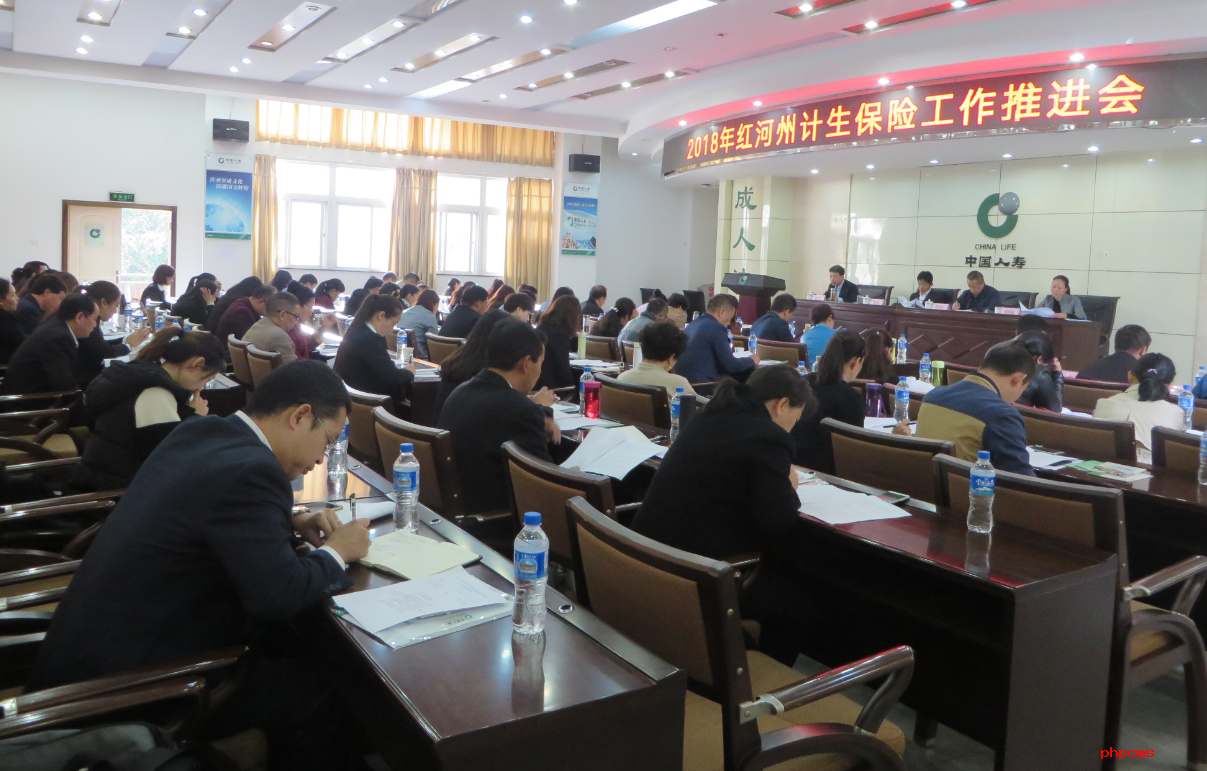 为认真贯彻落实云南省计生家庭意外伤害保险工作会议精神,10月31日上午,红河州召开2018年计生家庭意外伤害保险工作推进会,各县市卫计局局长、计生协常务副会长、计生协专职副会长、秘书长及人寿保险各县市支公司负责人共计60余人参加了会议。中共红河州卫计委党委副书记、纪委书记周世纪、中国人寿保险红河分公司总经理明黎强出席会议并讲话。