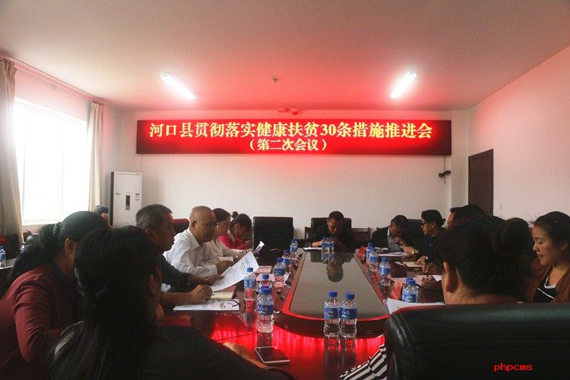 11月6日,河口县召开贯彻落实健康扶贫30条措施推进会,县人民政府副县长龙艳、健康扶贫成员单位负责人及相关业务人员共19人参加会议。