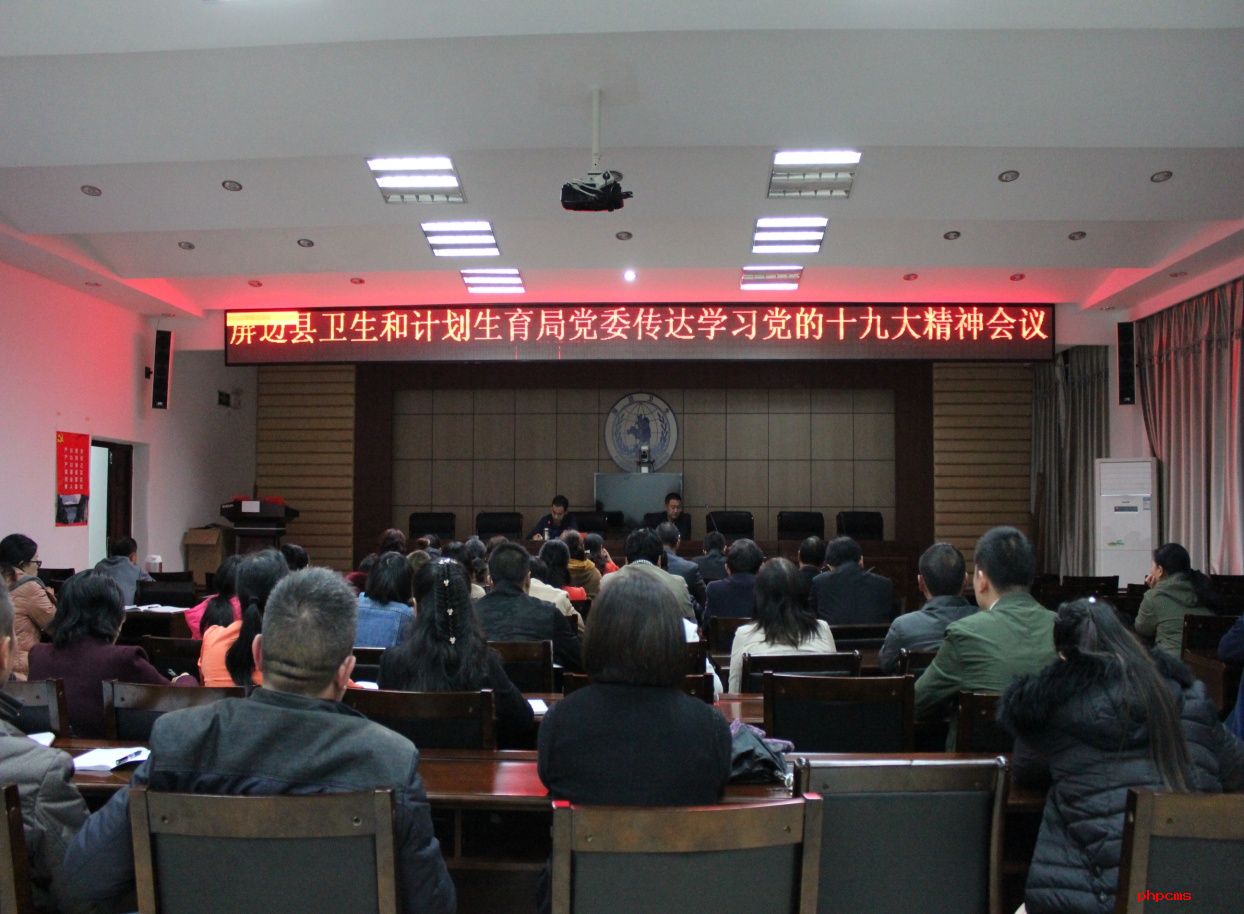 2017年11月7日,屏边县卫计局召开专题会议,学习传达了党的十九大精神。县属各医疗卫生机构党政班子成员、党员、中层以上干部共80余人参加了专题会议。