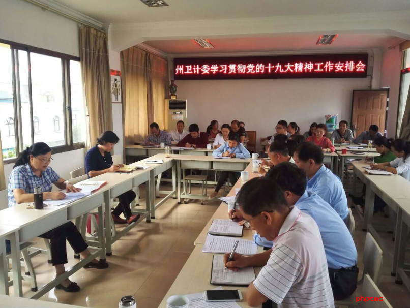 10月30日、11月13日,州卫计委、州计生协会分两次召开党组中心组学习扩大会议和干部职工会,传达学习党的十九大精神和全省、全州领导干部大会精神,认真安排传达学习贯彻学的十九大精神工作。