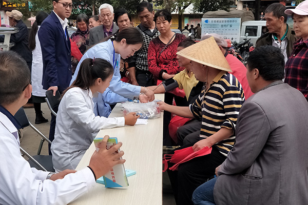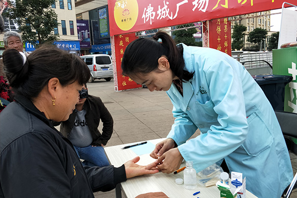 活动中,医生团队以套餐方式向前来参加服务的中老年人发放糖尿病的控制与饮食、认识糖尿病、老年人预防艾滋病、无偿献血、健康66条、缺乏预防、人感染高致病禽流感、呼吸系统疾病、肝脏疾病、中东呼吸综合征预防、个人身体活动指导方案、应对自然灾害小常识、精神病等13种宣传折页和健康知识小围裙,免费为中老年人量血压、测血糖并将测量结果写成小纸条交给服务对象。来自弥勒第一医院的临床糖尿病专家耐心细致地向患有糖尿病群众讲解血糖的控制、糖尿病预防等知识,免费为高血糖群众诊断病情,指导患有糖尿病群众就医和服药。