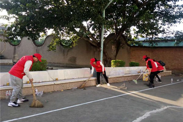 篮球运动会期间,党员志愿者参加秩序维护,打扫运动场卫生,清理观众留下的垃圾,为体育健儿助威鼓劲,为竞技比赛保驾护航。