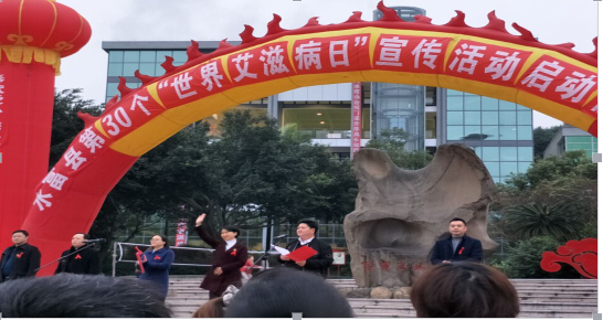 12月1日,水富县在春辉广场开展以“共担防艾责任、共享健康权利、共建健康中国”为主题的第30个“艾滋病日”宣传活动启动仪式,县委常委、副县长张琴、县人大副主任阳海燕、县政协副主席雷跃林出席启动仪式;参加启动仪式的还有相关成员单位领导,以及由公安、教育、卫计、社区、服务行业、志愿者等组成的数个方阵,现场活动氛围十分热烈。