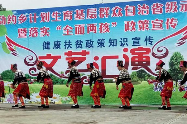 11月24日,由陇川县卫计局、陇川县计生协、勐约乡人民政府、勐约乡计生协联合在勐约乡政府组织开展了“勐约乡省级基层群众自治示范暨全面两孩政策、健康扶贫政策宣传文艺汇演”。此次活动旨在充分利用群众喜闻乐见、通俗易懂的方式展示勐约乡计划生育基层群众自治示范取得的成果,贯彻落实好全面两孩政策、《云南省健康扶贫30条措施》、防治艾滋病知识,使之做到家喻户晓、人人皆知,营造良好的社会舆论氛围。