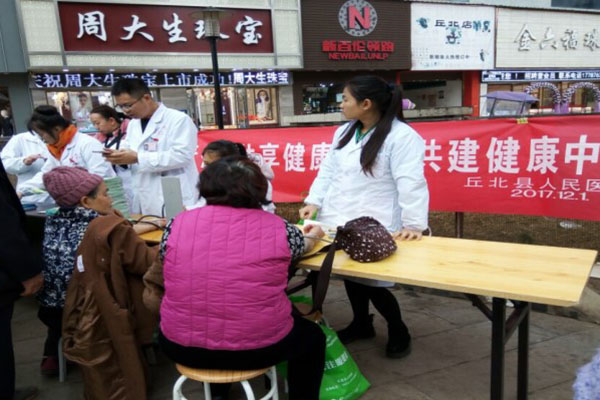 12月1日,丘北县以“共担拒毒防艾责任、共享健康权利、共享中国”为主题,由防艾委办公室牵头,组织妇联、团县委、科技局、公安局、法院、检察院、环保局、民政局、发改局等部门在丘北财富广场开展2017年“12.1世界艾滋病日”宣传活动。