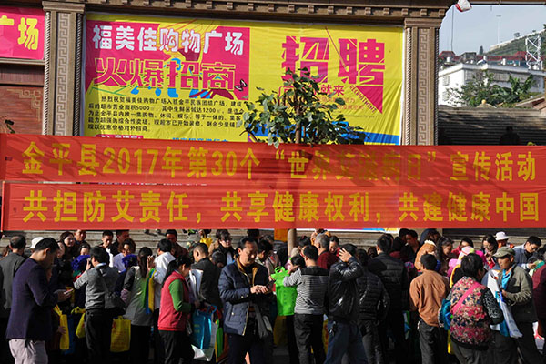 12月1日,是第30个“世界艾滋病日”。当天上午,县委宣传部、县公安局、县卫计局、县计生协会、县教育局、县民政局等30家县防艾成员单位、4家县属医疗机构在金平县十字路口联合开展以“共担防艾责任、共享健康权利、共建健康中国”为主题的宣传活动。