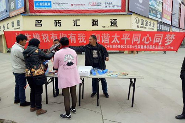 二、计生家庭维权宣传活动。昭阳区各级计生协借12.1“世界艾滋病日”宣传活动之机,继续加深巩固计生家庭维权的宣传工作,切实提高了计生家庭用法律维护自身合法权益的意识。11月28日上午,太平街道办事处在锦海建材城旁开展以“计生维权有你有我—和谐太平同心同梦”为主题的计生家庭维权知识宣传活动,宣传活动融“计生政策解读、法律维权解读、妇幼保健知识宣传、健康教育知识宣传”为一体,有针对性地发放全面两孩政策、妇幼生殖健康和法律维权知识等知识宣传折页和宣传品,向过往群众进行面对面宣传。宣传活动当天,共现场解答群众提出的各类问题30多个,发放各种宣传资料300多份。