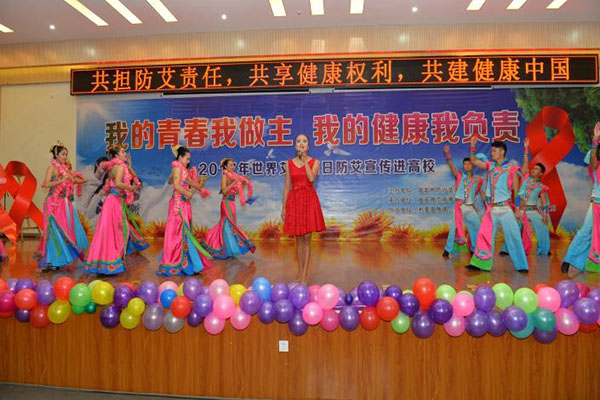 11月30日,德宏州防治艾滋病工作委员会、德宏州计划生育协会组织防艾义务宣传员深入德宏师专开展预防艾滋病进高校宣传演出活动。州委州政府党政领导及州防艾委成员单位相关领导、来宾以及师专学生500余人参加本次活动。