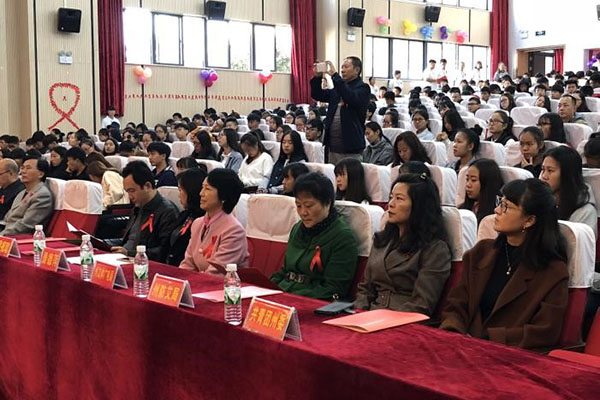 州委常委、副州长闫卫国到会讲话,德宏师专校长江滇致辞。要求广大青年学生要认真学习防治艾滋病的相关法律法规和有关防治知识,树立正确的性道德观、婚恋观,增强自我保护意识和能力,杜绝高危性行为,成为艾滋病防治知识的传播者和防艾生力军。通过建立防艾志愿者队伍、学生社团,积极开展形式多样、内容丰富的学校防治艾滋病宣传活动,倡导关爱艾滋病感染者和病人,发挥志愿者在抗击艾滋病中的积极作用。