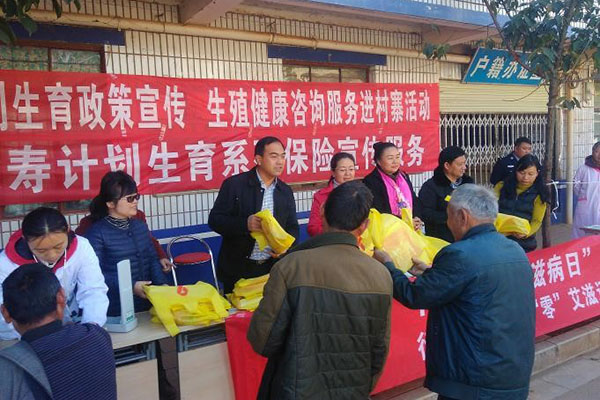 11月28日,由建水县计生协牵头,联合建水县妇幼保健计划生育服务中心、中国人寿建水县支公司、青龙镇政府、青龙镇卫生院、青龙镇计生办、青龙镇派出所等单位,利用青龙镇赶集日积极开展“计划生育政策宣传及生殖健康咨询服务进村寨”宣传服务活动。