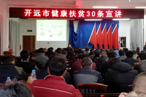市卫计局局长、市计生协常务副会长陈秋圻作《开远市健康扶贫政策》宣讲培训,围绕《云南省健康扶贫30条措施》,重点讲解了健康的重要性,从如何实现提高人民健康水平的核心目标、健康扶贫工程有哪些工作重点、健康扶贫政策具体的措施有哪些、建档立卡贫困人口就医报销所需材料有哪些等方面。同时,指出全国“因病致贫,因病返贫”的贫困户占很高比例,要了解健康扶贫的内容和报销程序,对健康扶贫工作能否圆满完成意义重大。健康扶贫必须做到让百姓看得起病、看得好病、看得上病、愿意看病、少生病,只有做到这五点,扶贫工作才能成功。实行定点医疗机构“一站式”结报,具体疾病报销内容、程序及要求,通过政策解读宣讲、生动事例,广泛宣传了开远市健康扶贫的政策措施,内容详实,生动形象,政策性和指导性非常强。