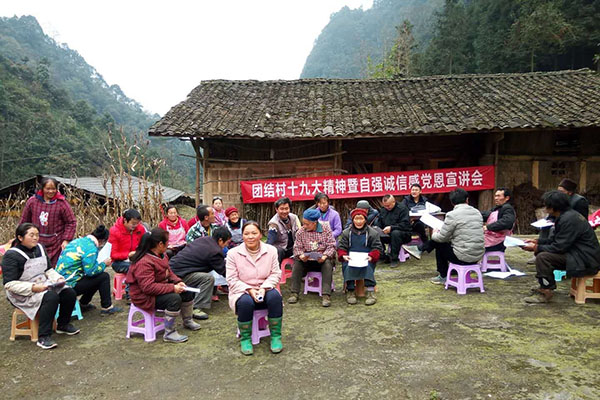 为了深入学习宣传贯彻党的十九大精神,12月3日-12月4日,绥江县计生协会联合绥江县卫计局分成15个小组深入精准扶贫挂钩村团结村1-15组开展十九大精神暨自强诚信感恩党宣讲活动。