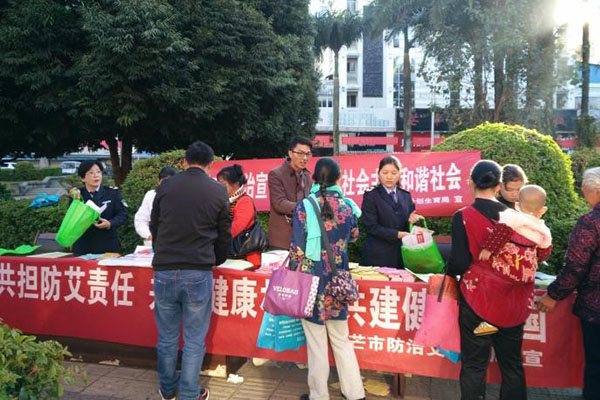 12月4日,州卫生计生委、州计生协会与芒市卫生计生局、芒市妇幼保健计划生育服务中心、芒市卫生监督大队、芒市疾病预防控制中心、勐焕街道社区卫生服务中心等部门,联合在芒市街心花园开展以“学习贯彻党的十九大精神,维护宪法权威”为主题的2017年“12·4”国家宪法日集中宣传活动。